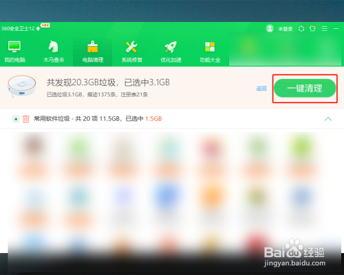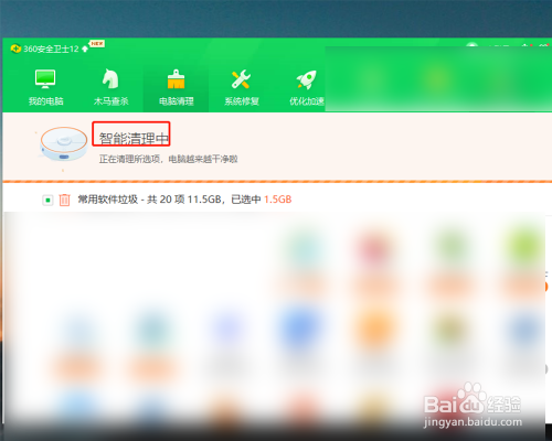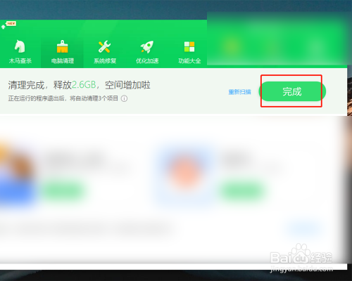软件起头清理电脑上的垃圾,清理完当作后点击完当作。