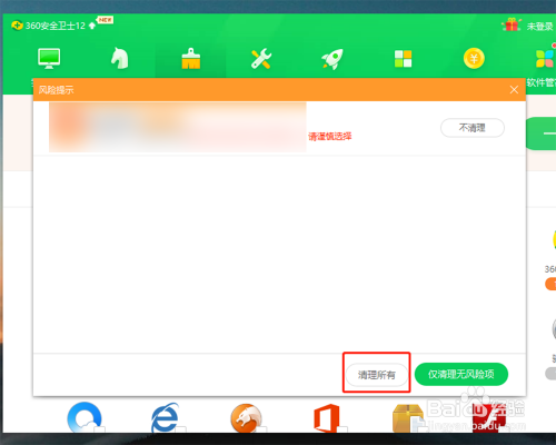 有时辰会弹窗风险提醒框,点击清理所有。