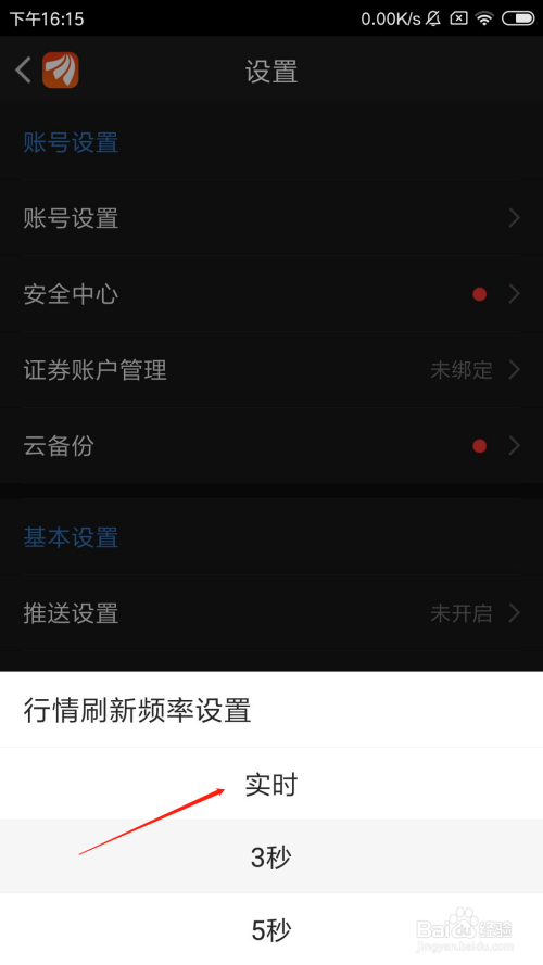 点击之后,东方财富的行情刷新频率就设置为及时了。