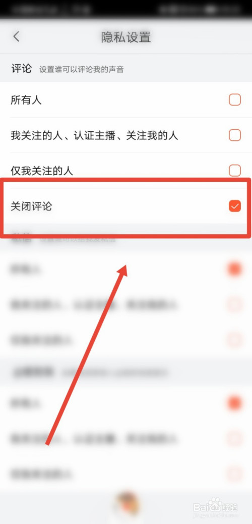 进入到隐私设置的通用功能页面后,将评论下的功能设置为“封闭评论”即可。