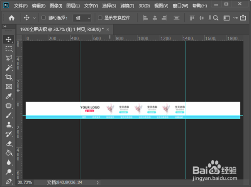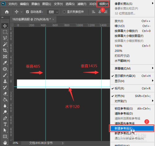 淘宝店招中心内容是部门950,我们在【视图】中找到【新建参数线】,(每次新建只能添加1条参考线,需要反复几回操作)别离标注好3条参数线的位置。(天猫店招为990,需要从头计较一下参考线的位置),如图所示。