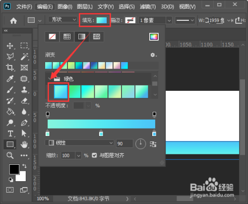 接着,我们选中矩形【填充】为绿色的渐变颜色,如图所示。