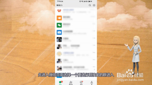 1、进步前辈入微信页面选择一个要进行群接龙的群进入。
