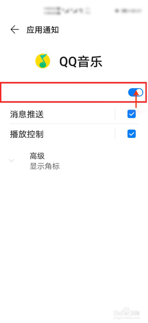 7、点击QQ音乐应用通知按钮封闭即可设置完当作。
