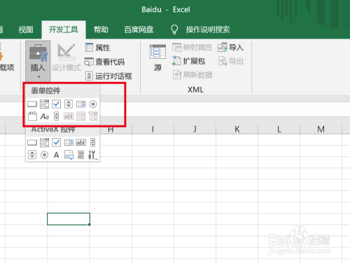 选择表单控件下的【带勾框】图标;