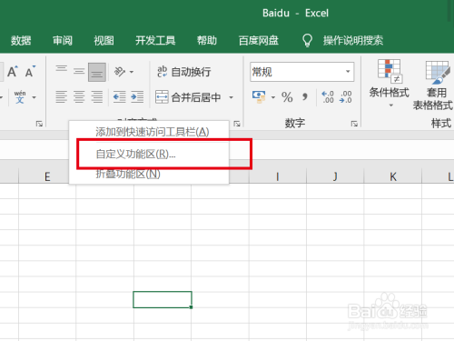 鼠标移动到题目栏的空白区域,单击右键,选择【自界说功能区】;