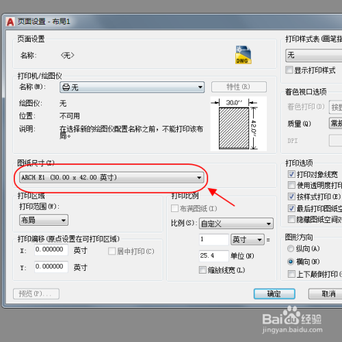 跳转至页面设置界面,进行图纸尺寸点窜。