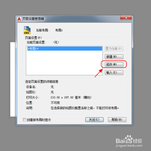 进入页面设置办理器,点击“点窜”按钮。