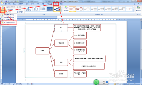 点击中间题目文本框——点击设计——添加外形——鄙人方添加外形,直到添加到四个二级分支为止。