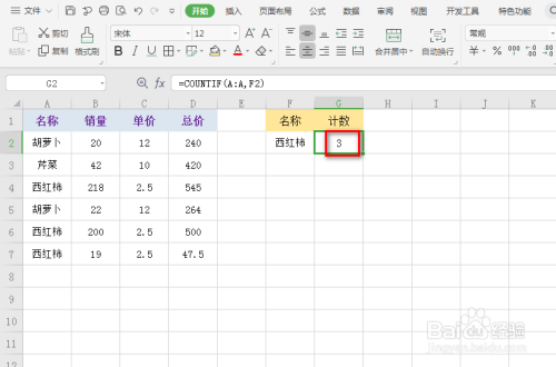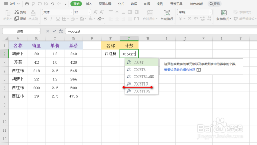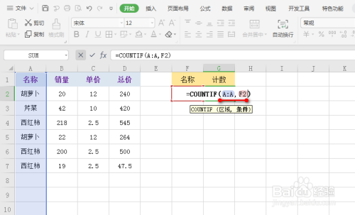 在一空白单位格中,输入关头字并找到函数countif,具体如图所示: