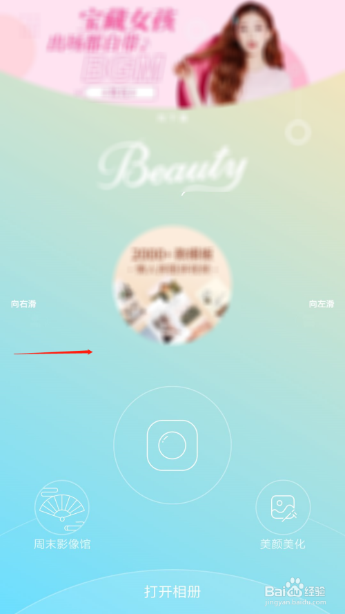 打开佳丽相机之后,从左标的目的右滑动屏幕。