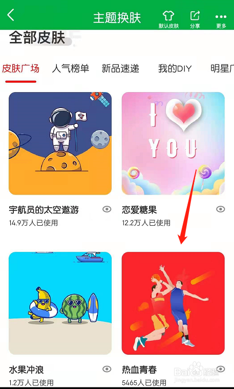 可以看到有多条目APP本家儿题皮肤可以选择。点击喜好的皮肤。