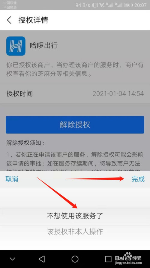 点击“不想利用该办事了”一栏,点击“完当作”即可。
