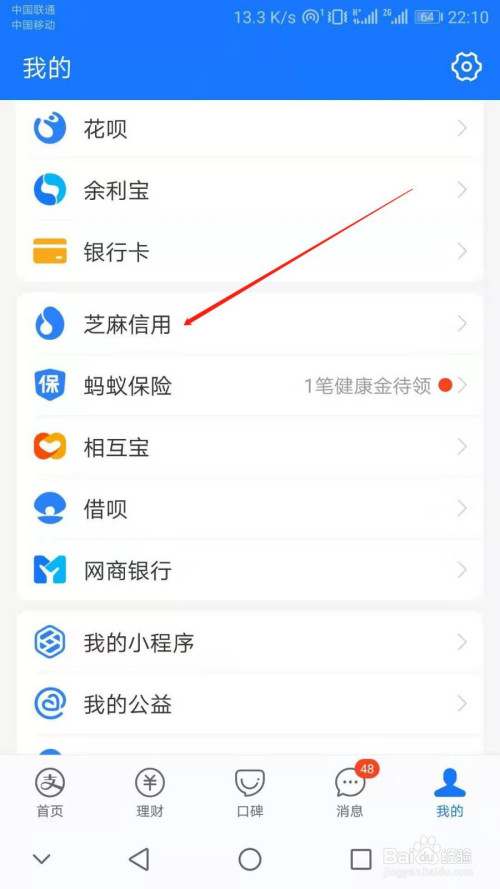 然后点击“芝麻信用”一栏。