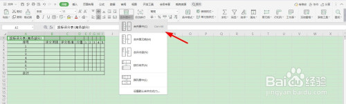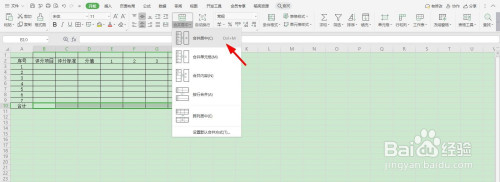 再将第一列单位格全数选中并“归并居中”