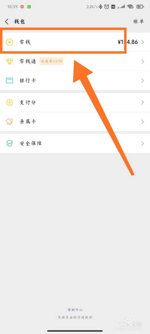 进入我们的钱包后,点击零钱
