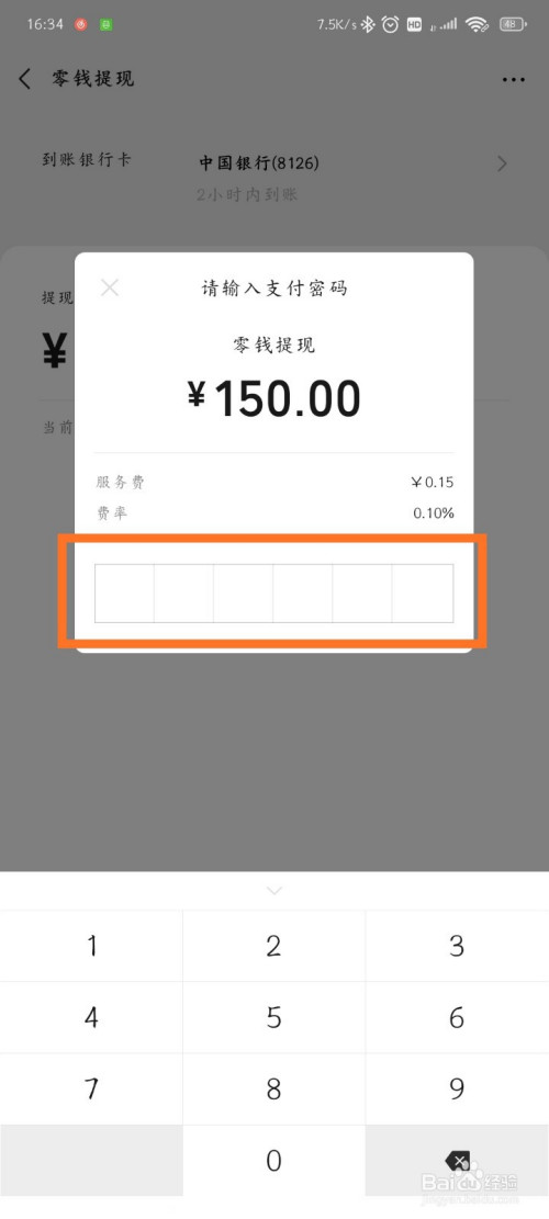 最后输入密码即可提现到银行卡啦