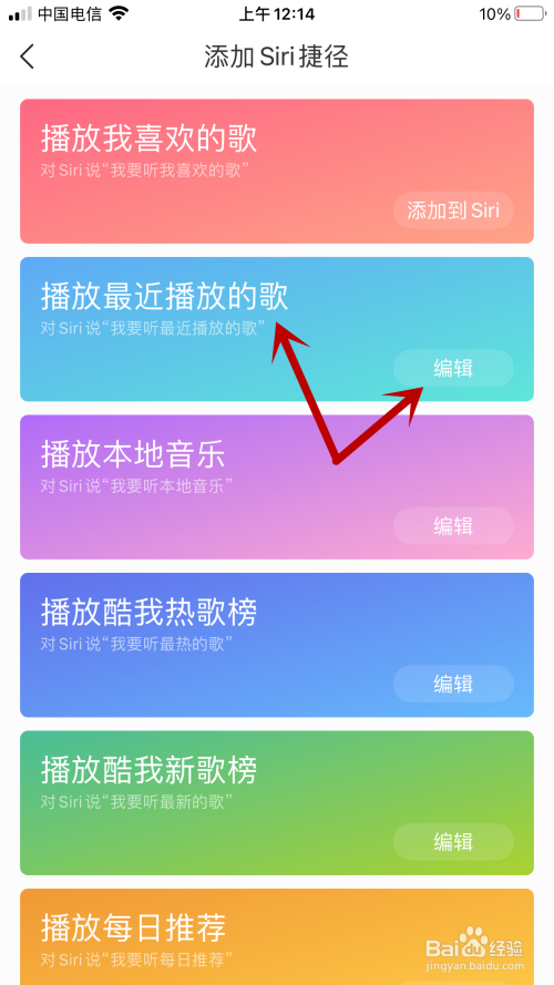 跳转新页面后,查找并点击“播放比来播放的歌”右侧“编纂”按钮。