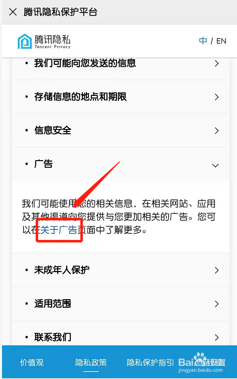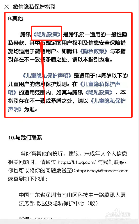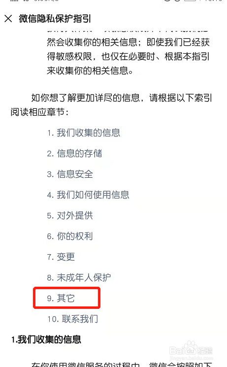 点击“隐私庇护指引”,下拉页面,找到9.其它。