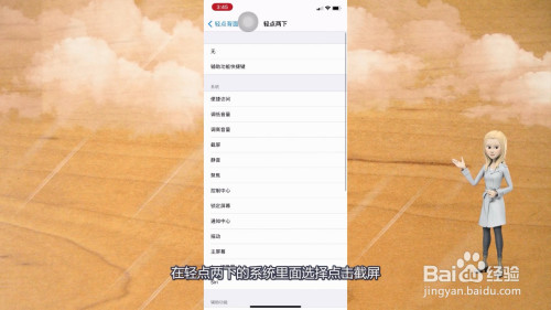 6、在轻点两下的系统里面选择点击截屏,选择好今后点击左上角的轻点后背返回就可以了。