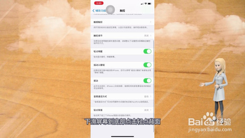 4、进入触控界面,下滑屏幕到底部点击轻点后背。