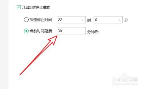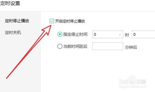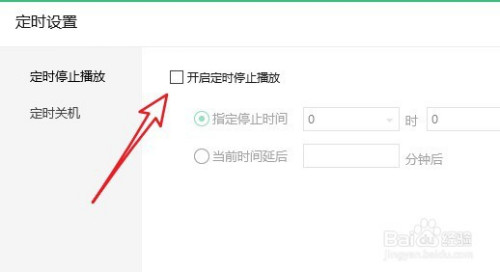 然后在打开的按时设置窗口,找到开启按时遏制播放设置项。