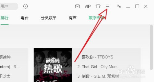 首先在电脑上打开QQ音乐,点击右上角的本家儿菜单按钮。