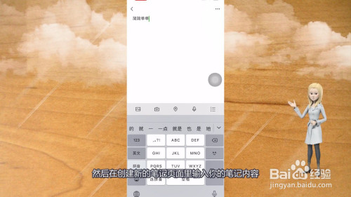 5、然后在建立新的笔记页面里输入您的笔记内容。