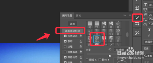 点击笔刷设置,选择120画笔并设置画笔大小。