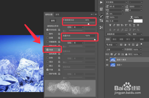 冰雪结果笔刷设置完当作,应用结果如下图所示。