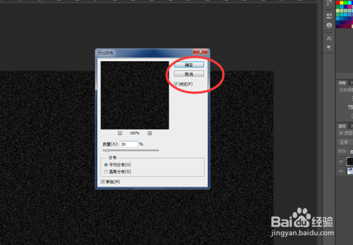 将杂色数目设置为30,点击确定。