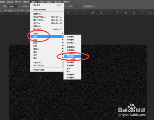 随后选择ps顶部菜单,打开滤镜-杂色。