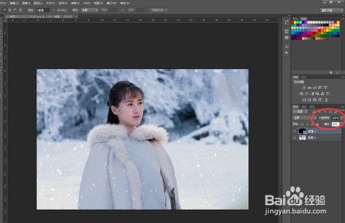 最后将新图层与阈值转为智能对象,并将填充点窜为10%即可。