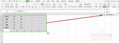 选中所稀有据区域,并在“起头”选项卡下点击“排序”---“自界说排序”,具体如图所示: