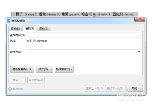 我们选中文档,按CTRL+H,打开查找与替代窗口。