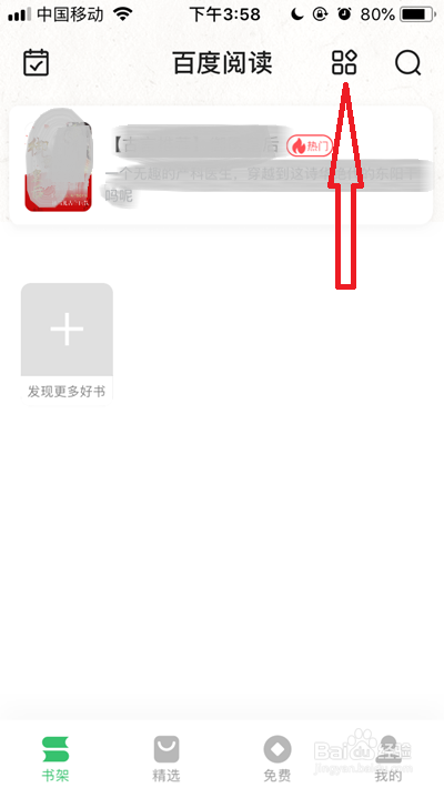 然后点击百度阅读首页右上角的这个图标(请看我截图箭头所指的处所)
