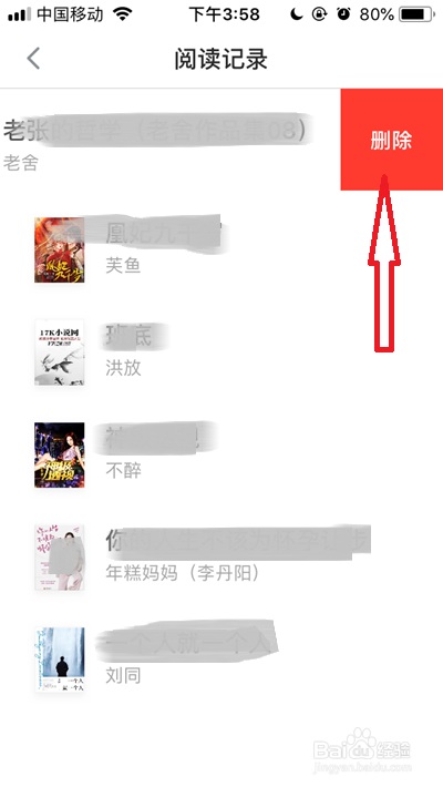 找到本身要删除的阅读记实,然后标的目的左滑动,就会显示【删除】,我们点击删除即可删除该阅读记实。