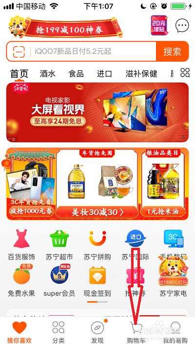 要采办的商品选择好后,点击底部导航栏中的【购物车】