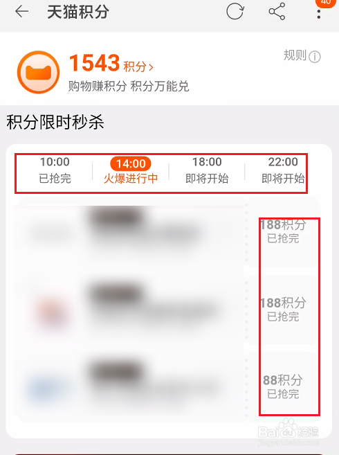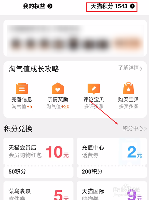 在用户页面中,我们可以看到天猫积分,这里我们打开积分中间选项。