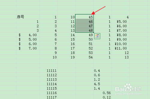 在编纂区中输入表格数据后,选中需要利用自界说数据格局的单位格。