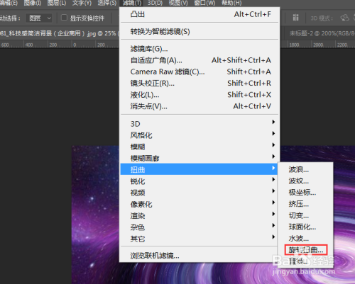 点击【滤镜】-【扭曲】-【扭转扭曲...】,设置扭曲的角度