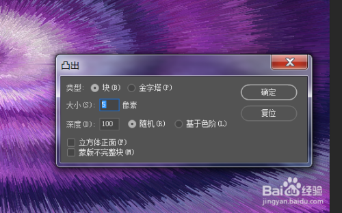 再点击【滤镜】-【气概化】-【凸出...】,设置大小和深度
