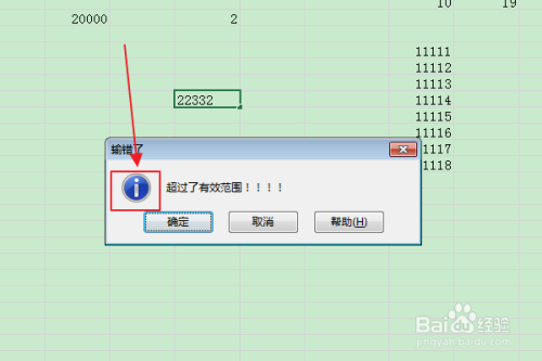 返回编纂区,可以看到输入无效数据弹出的“犯错警告”提醒框的图标已被点窜。