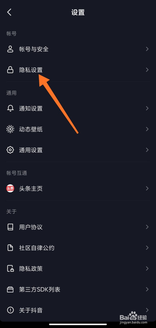 设置页面中点击隐私设置。
