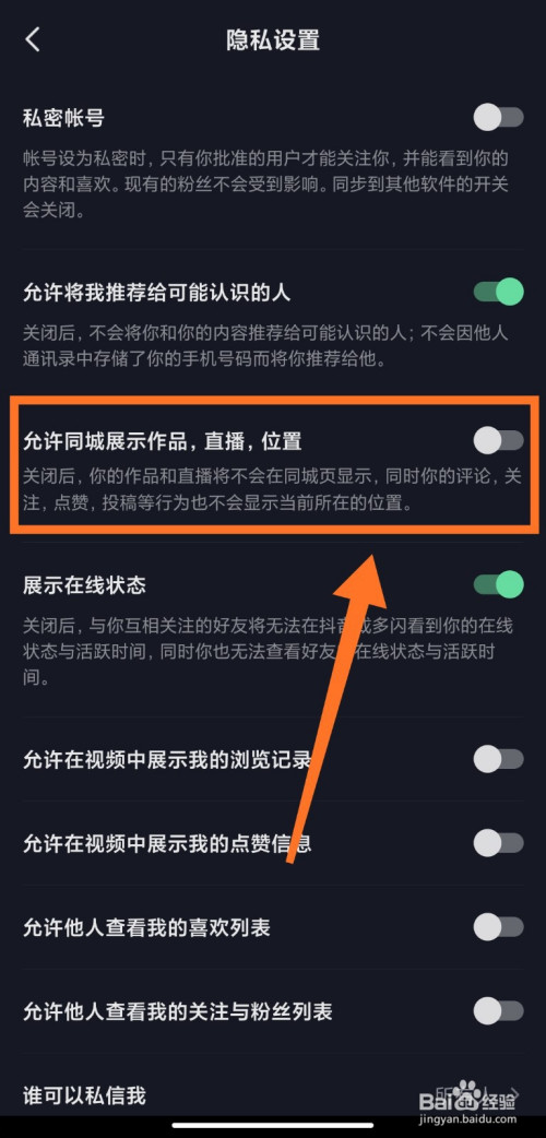 点击封闭许可同城展示作品、直播、位置。