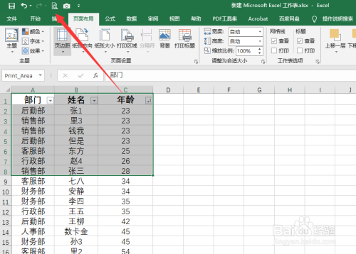 选中需要打印的区域。