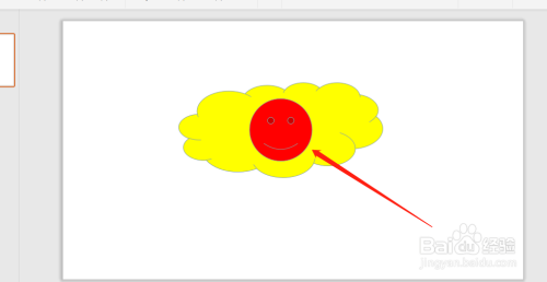 绘制卡通云朵外形,最后绘制一个红色笑脸就可以了。