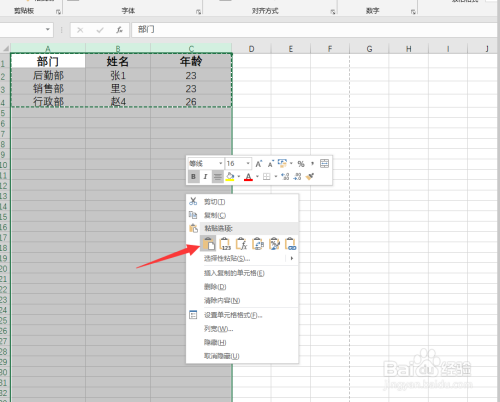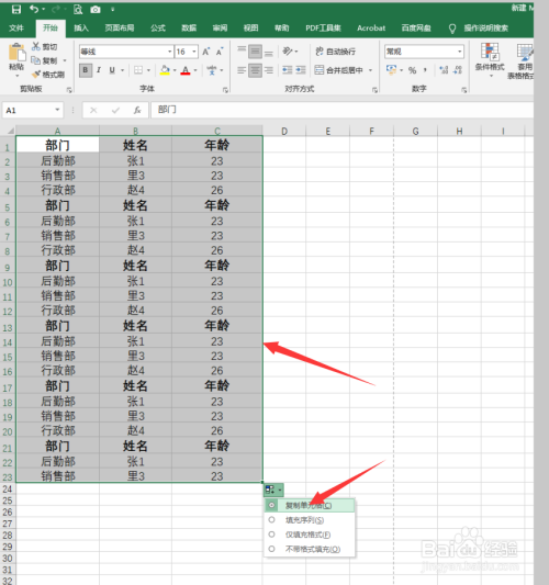 在截止粘贴区域,点击复制单位格,复制粘贴当作功。