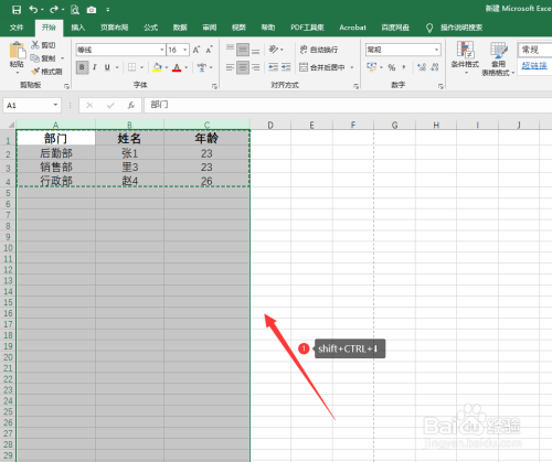 shift+CTRL+标的目的下箭头,选中下地契元格。