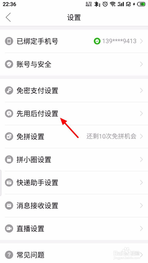 【1】打开 拼多多,点击 小我中间>设置>先用后付设置;